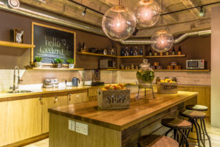 Our venue features cozy booths and flexible seating options to suit your group’s needs. The fully equipped pantry kitchen, stocked with snacks, cereals, and beverages like coffee and tea, ensures that your guests are always refreshed. Plus, our attentive reception team is on hand to take care of every detail, so you can focus on your event without worrying about logistics.