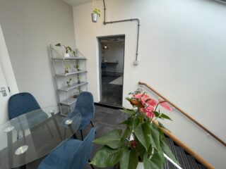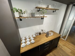 To enhance comfort and convenience, the room includes internal coffee stations with complimentary coffee, tea, filtered water, and a selection of biscuits, making sure refreshments are always within reach. Just outside the boardroom, you’ll find a welcoming breakout area, perfect for informal discussions or taking a quick break. The cosy kitchen offers an array of breakfast cereals and snacks, providing an extra touch of hospitality. Guests are also welcome to use our shower facilities to freshen up after a long meeting or before heading out to a nearby engagement.